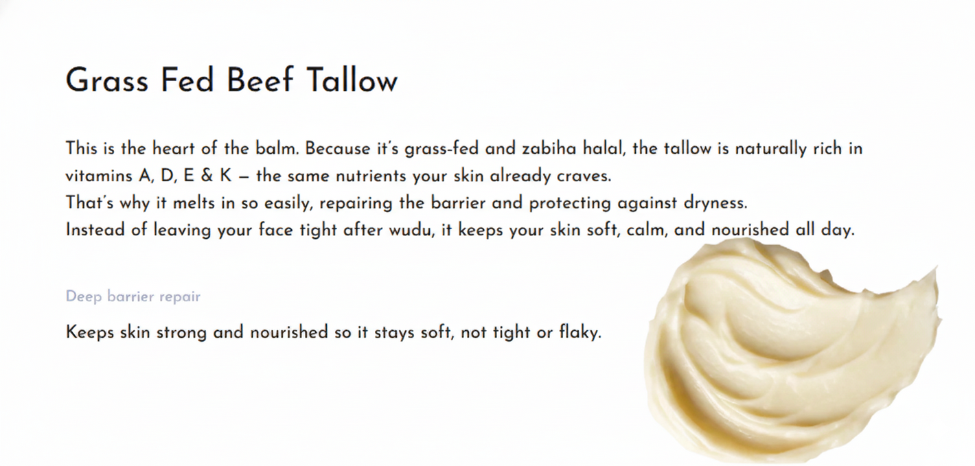 At Tayyib, we cut all of that out. Every ingredient we use is there for a reason: to repair, to soothe, and to keep your skin safe. It means our formula isn’t the cheapest to make — but it’s the one you can actually trust on your skin, day after day.